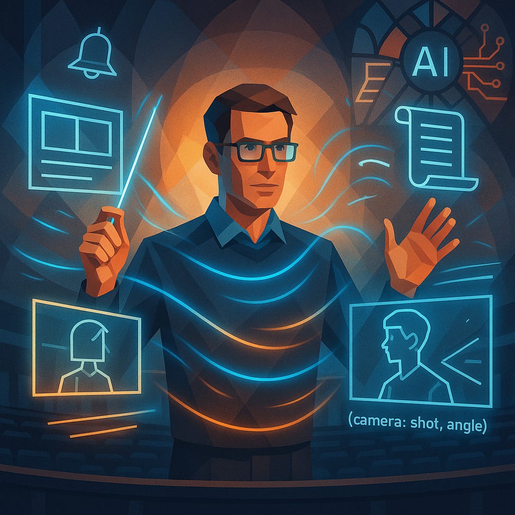Directing AI video creation is like conducting a symphony—intentional, imaginative, and mindful of every detail coming together. Image made in ChatGPT.